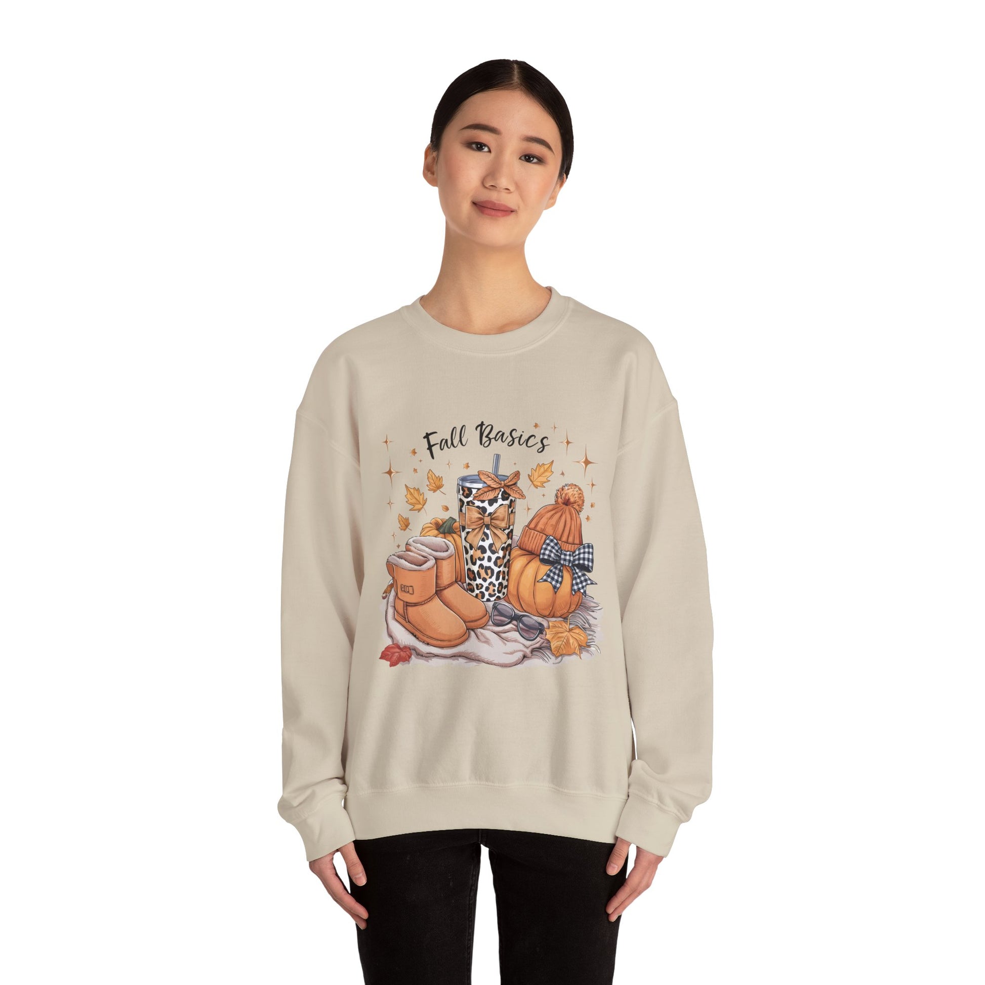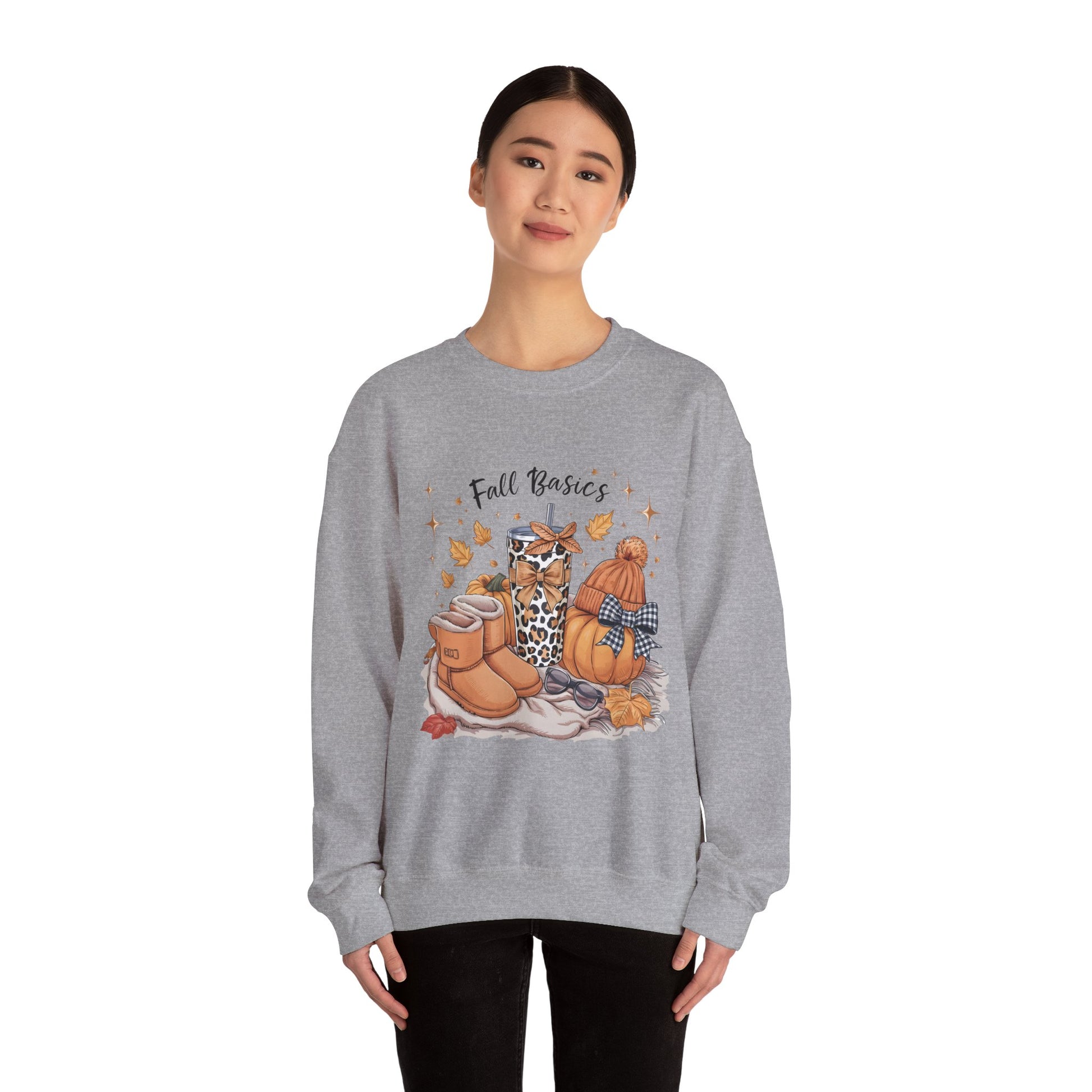 Cozy Fall Essentials Sweatshirt - Unisex Crewneck with Pumpkin & Boot Design, Autumn Gift, Casual Wear, Seasonal Apparel, Cozy Vibes